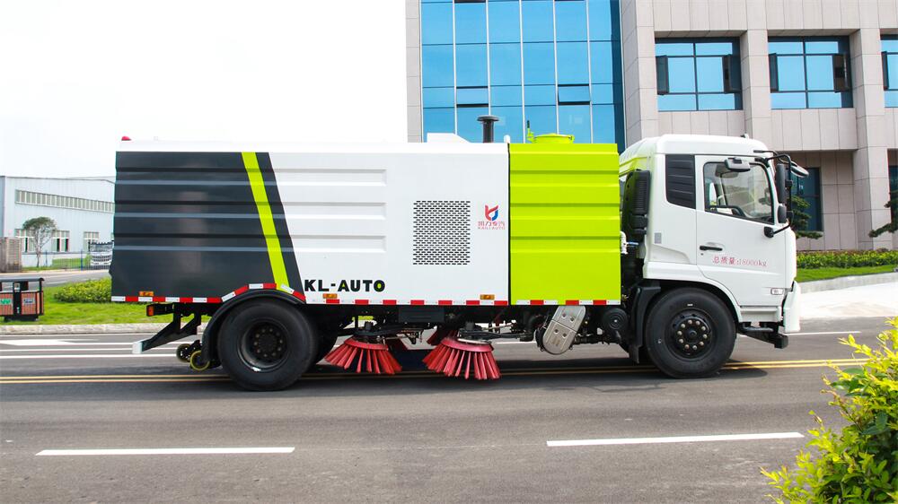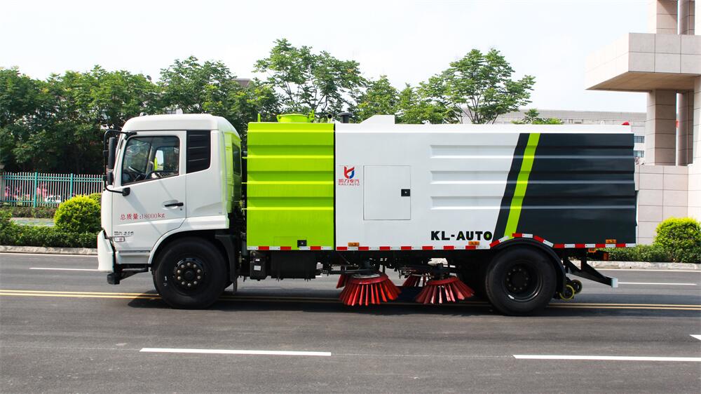 1.采用吸掃混合的方式收集垃圾,濕式除塵、電液,液壓傾翻卸料的作業(yè)方式對(duì)路面進(jìn)行清掃作業(yè)。