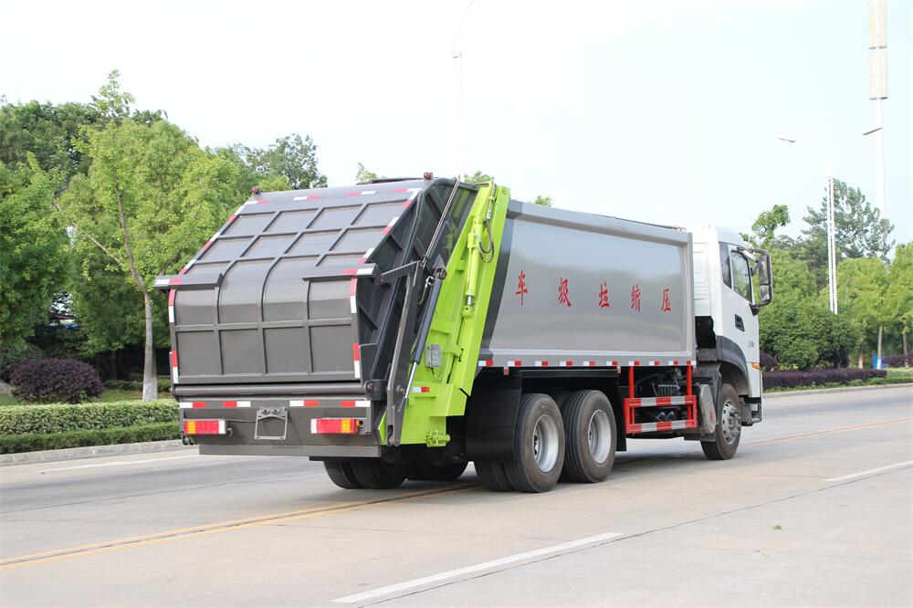 上裝配置:垃圾箱容積:18,20方選擇,新款平面弧形廂體,廂體材料為武鋼優(yōu)質(zhì)碳鋼,PLC一鍵操作**,手電一體操作模式,兩側(cè)雙電控,帶駕駛室內(nèi)操作,底板支撐加強(qiáng),雙向壓縮,開(kāi)放式易清潔污水箱。壓縮式垃圾車采用機(jī)電液一體化技術(shù),借助機(jī)、電、液聯(lián)合自動(dòng)**系統(tǒng)、電腦**、手動(dòng)操作系統(tǒng),通過(guò)填裝器和推鏟等專用裝置,實(shí)現(xiàn)垃圾倒入、壓碎或壓扁、強(qiáng)力裝填,把垃圾擠入車廂并壓實(shí)和推卸,污水全部進(jìn)入污水廂,解決了垃圾運(yùn)輸過(guò)程中的二次污染的問(wèn)題。壓縮式垃圾車具有自動(dòng)反復(fù)壓縮以及蠕動(dòng)壓縮功能,壓縮比高、密封性好、裝載量大﹑操作方便、環(huán)保性好﹑整車?yán)霉β矢叩葍?yōu)點(diǎn)。作業(yè)自動(dòng)化,垃圾收集方式簡(jiǎn)便、高效。后翻轉(zhuǎn)機(jī)構(gòu)選裝:1、掛塑料桶式翻轉(zhuǎn)機(jī)構(gòu);2、掛鐵桶式翻轉(zhuǎn)機(jī)構(gòu);3、擺臂式翻轉(zhuǎn)機(jī)構(gòu); 4、簸箕斗式翻轉(zhuǎn)機(jī)構(gòu)。