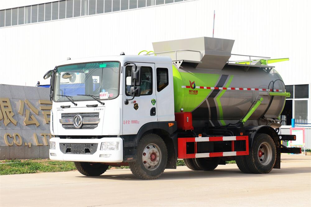 上裝配置:罐體容積10m3,配備120L/240L掛桶提升翻轉機構,液壓系統(tǒng),后蓋液壓鎖緊開啟,罐體可以舉升自卸,尾部帶自流閥;用于運輸液態(tài)垃圾,其特點操作簡單,密封性好,無泄漏,無異味;可選裝固液分離功能,推板擠壓功能,常用于餐館的垃圾轉運處理。