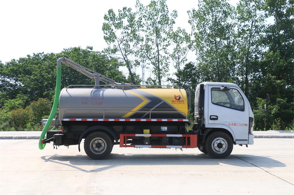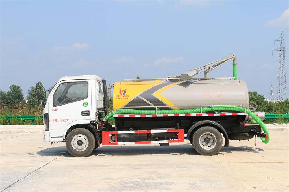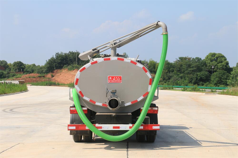 上裝配置:5T真空油泵(SK-9水循環(huán)泵), 油水分離器 ,防溢閥,視糞管,洗水箱,吊桿座(可270度旋轉(zhuǎn)),尾部一個220排糞口帶駕駛室操作,一根6米吸糞管帶陰陽端快接頭。