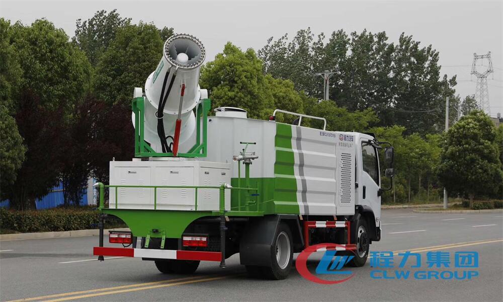 上裝配置:罐體容積為 8立方,選配風(fēng)送式霧炮機(jī)組射程30米、40米、50米、60米、80米、100米、120米霧炮,罐體鋼板為4mm碳鋼Q235材質(zhì),罐內(nèi)隔板具有防波作用,以減輕汽車行駛時(shí)罐體液體沖擊,罐體及整車外形尺寸按照公告。帶大功率專用灑水泵,泵可自吸自排,整車前沖、后灑、側(cè)噴、帶65消防接口,后平臺(tái)配CLW-50、CLW-60、CLW-80、CLW-100、CLW-120型風(fēng)送式霧炮機(jī)組;罐體前封頭配大功率柴油發(fā)電機(jī)組;前封頭帶水位計(jì),后平臺(tái)主管路帶1寸澆花接口,后爬梯。帶兩根輸水管及陰陽(yáng)端。罐體顏色:銀/灰/綠,罐體兩側(cè)噴“多功能抑塵車”字樣,貼反光標(biāo)示。